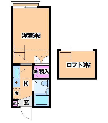 室内は、6帖の洋室となっておりますが3帖のロフトも付いていますので、