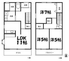 こちらの物件はテラスハウスタイプで1階と2階が行き来できます。
