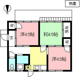 お部屋は、洋室4.5帖が2部屋、和室4.5帖が一部屋あり、各部屋に収納があり、