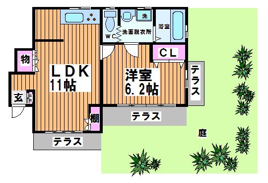 こちらの物件の魅力は、専用の庭が付いているので、洗濯物も