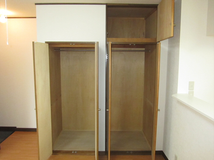 お部屋にはそれぞれ収納が付いており、ウォークインクローゼットもありますので、荷物もたっぷりしまえます。お部屋も広々お使い頂けます。