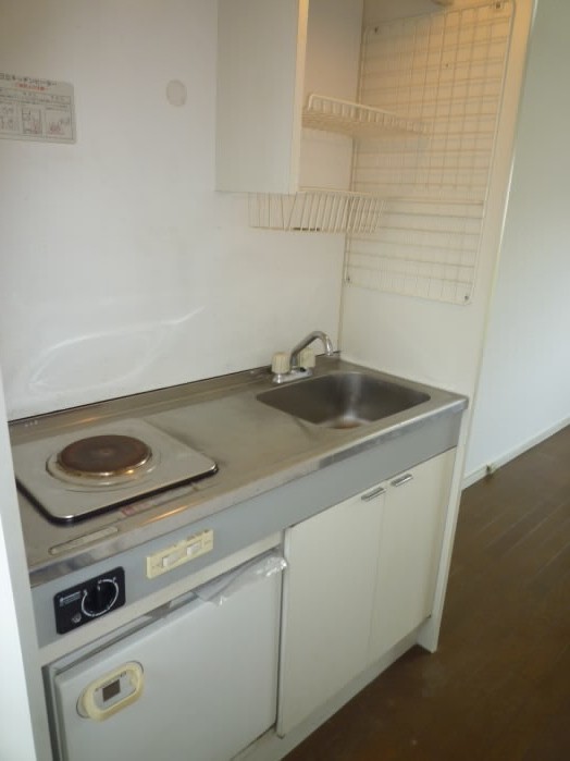 キッチンは電気コンロでミニ冷蔵庫も付いてます!!