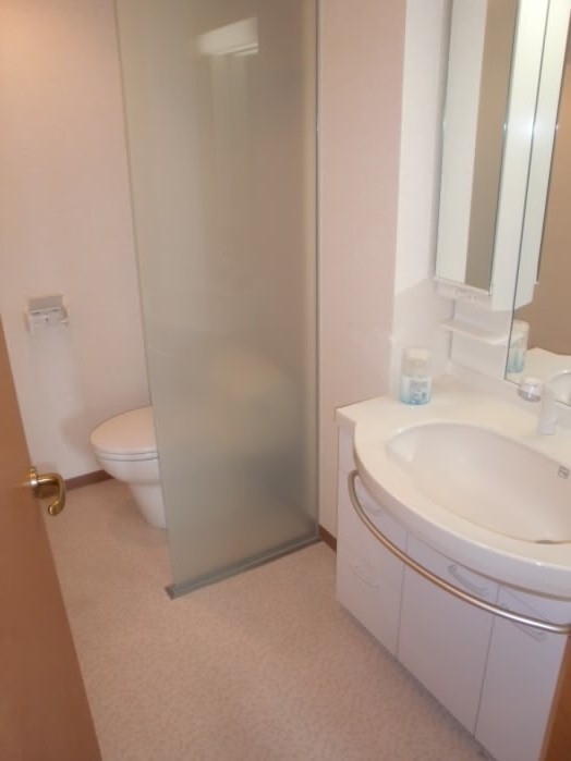 洗面所とお手洗いのスペースはガラス張りでオシャレになっております。