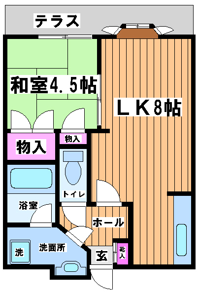 室内は、ダイニング8帖、和室4.5帖となっております。