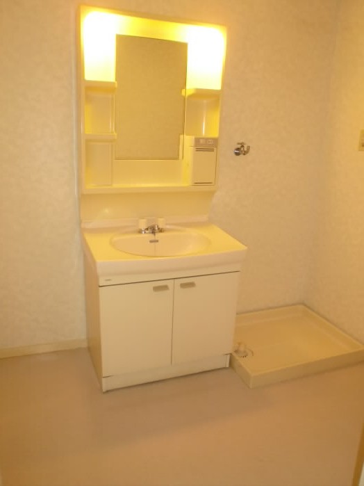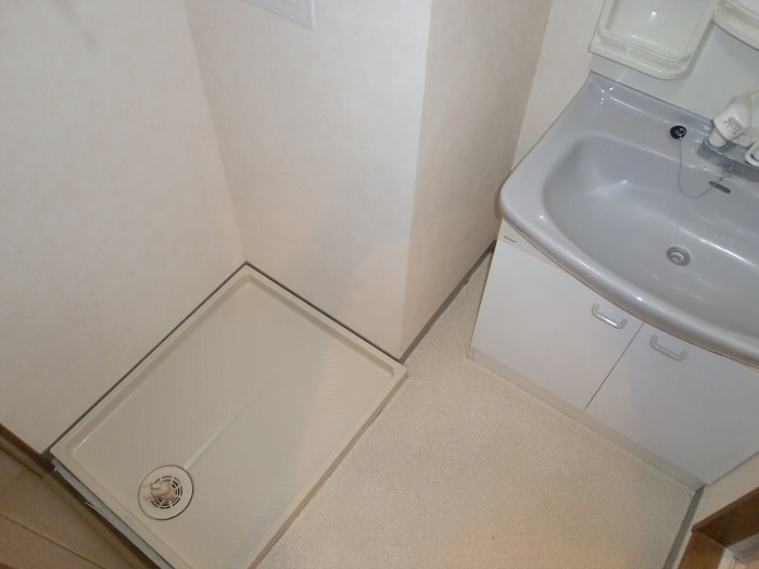 脱衣所には室内洗濯機、独立洗面台がついています。