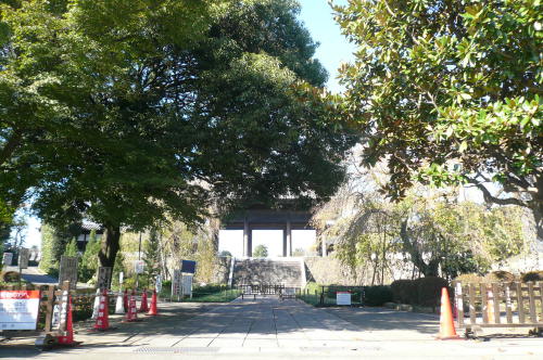 東郷寺通りを南に下っていくと府中崖線と交わり、坂の途中西側に山門が雄大な東郷寺があります。ここのシダレザクラは有名で、開花時には多くの花見客で賑わいま